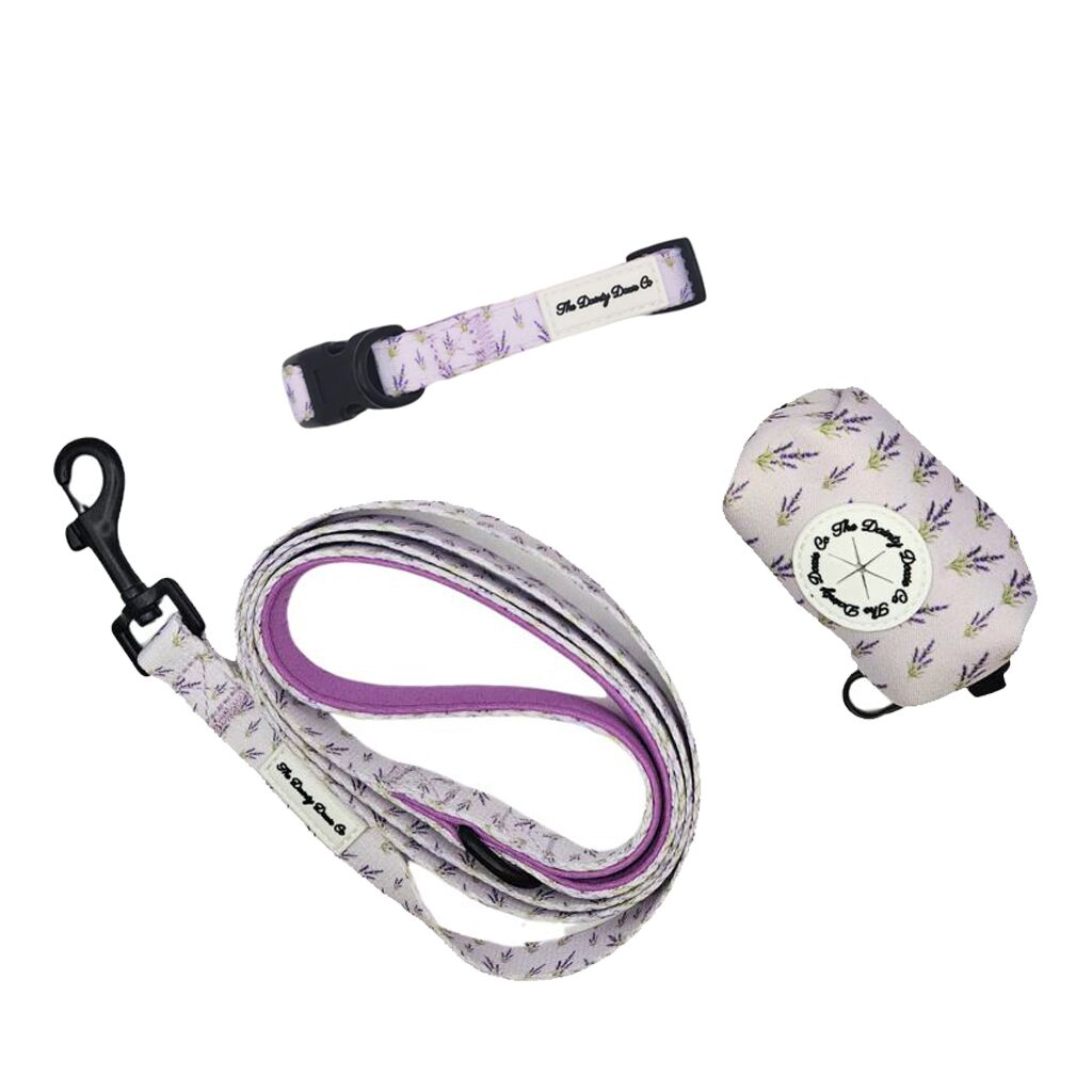 Introducing the Live, Love, Lavender Dachshund 3-Piece Bundle! This chic set includes a collar, leash, and waste bag holder. Perfect for stylish and coordinated walks with your pup!